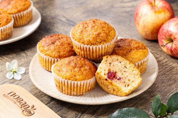 Описание приготовления: Ниже я расскажу подробнее, как приготовить постные яблочные кексы. Яблоки лучше выбирать кисло-сладких сортов. Вместо сушеной вишни можно добавить вяленую клюкву, изюм или шоколадные капли. Тростниковый сахар можно заменить на кокосовый или обычный белый. Кексы получаются ароматными, чуть