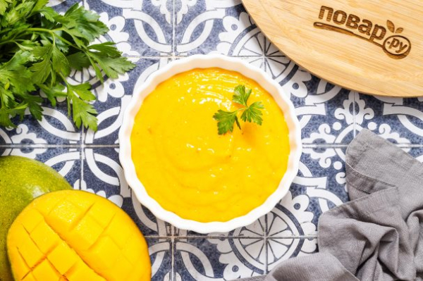 Описание приготовления: Ниже я расскажу подробнее, как приготовить манговый соус. Манго обязательно должно быть спелое и мягкое. Растительное масло выбирайте с нейтральным вкусом и запахом, например, масло авокадо, кукурузное или виноградной косточки. Оливковое может немного горчить. Количество остальных специй можно
