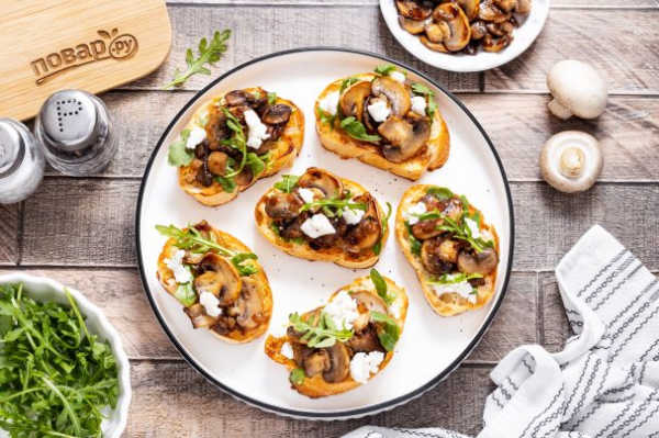 Описание приготовления: Ниже я расскажу подробнее, как как приготовить брускетту с грибами. Вместо багета можно использовать хлеб чиабатта или в крайнем случае батон. Шампиньоны можно заменить на другие грибы, например, вешенки или лисички. Лесные грибы тоже подойдут, но предварительно их