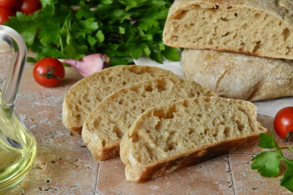 Описание приготовления: Чиабатта на ржаной закваске — ароматный итальянский хлеб с хрустящей коркой и пористой, влажной мякотью. Благодаря ржаной закваске чиабатта приобретает лёгкую кислинку и особую глубину вкуса. Отлично подходит к супам, сырам и оливковому маслу. Основной ингредиент: Мука /
