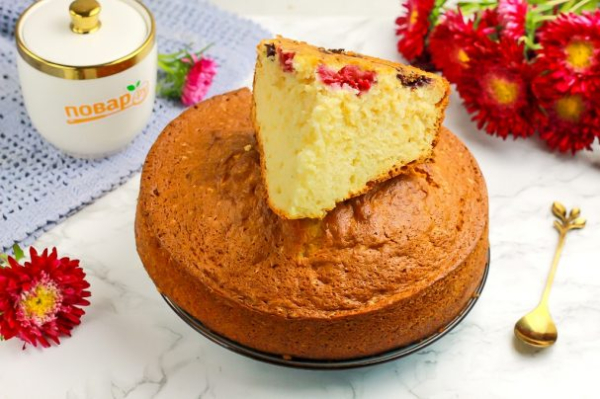 Описание приготовления: Румяный пирог можно приготовить на сметане любой жирности, главное — прогреть ее при комнатной температуре, чтобы она не была холодной. Ягоды выбирайте не крупные, с мелкими косточками или вовсе без них: голубика, черника, малина, клубника и т.д. Обязательно