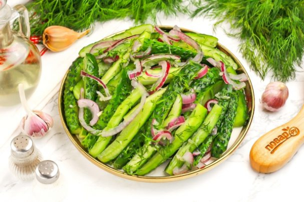 Описание приготовления: Выбирайте молоденькие плоды без крупных семян и плотной кожуры, обязательно пробуя их на вкус. Бывает, что попадаются горькие огурцы. В качестве дополнения отлично подойдет красный или зеленый лук, петрушка или укроп, листья сельдерея и т.д. Чтобы они вобрали