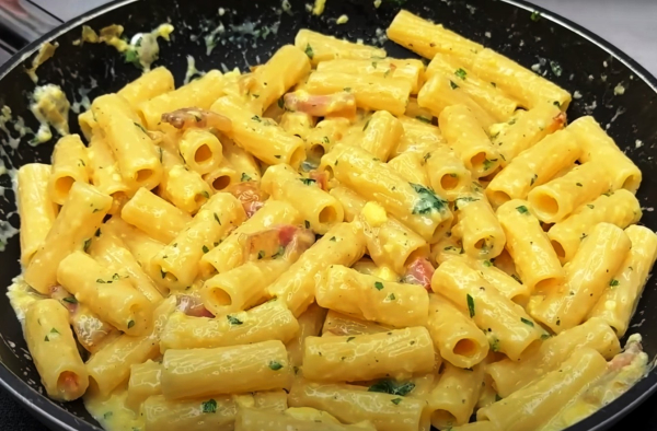 Пока начинка остывает, смешиваем яйцо с сахаром и сметаной. Добавляем в смесь сливочное масло и снова перемешиваем.