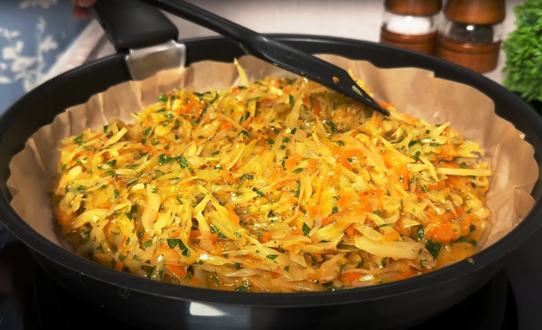 Теперь добавим зелень. У меня для таких случаев всегда в морозилке лежит измельченная петрушка. Ее вкус придаст интересный оттенок нашему блюду.