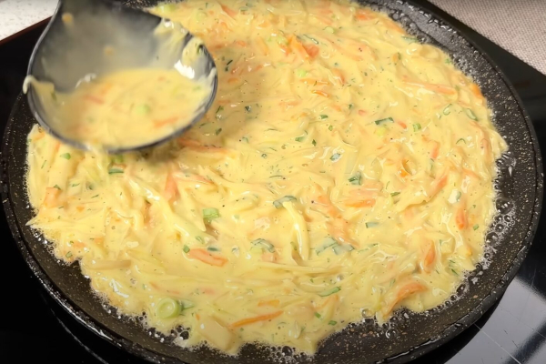 Помидор, нарезанный не очень мелкими кусочками, также отправляется в сковородку.
